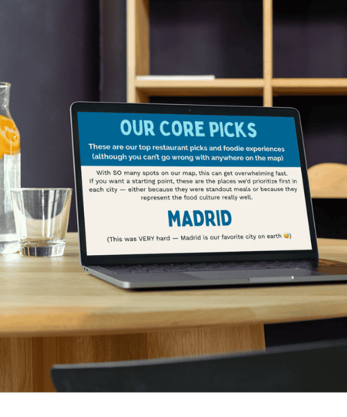 The full Spain Food Guide is designed to help you feel relaxed, confident, and decisive in the moment when you’re jetlagged, hungry, and prone to making questionable food decisions. It removes the guesswork and the second-guessing.